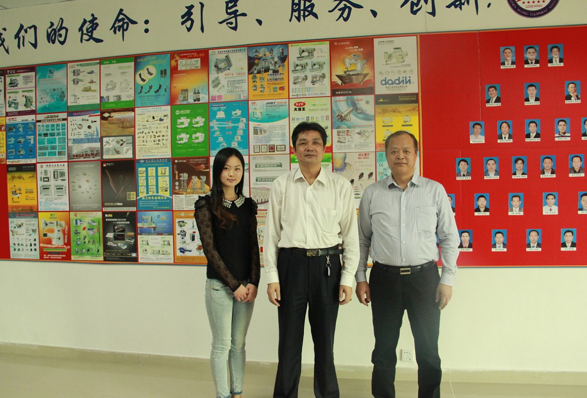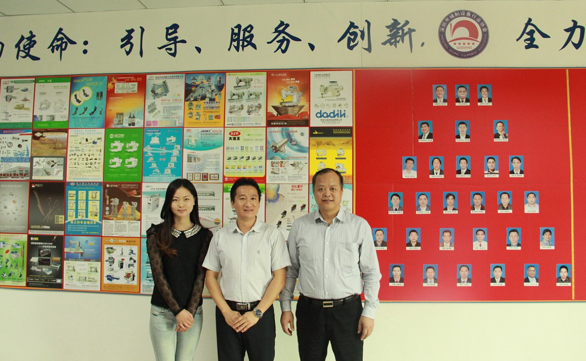 右:江苏省工商联缝制设备商会秘书长高家平;中:深缝协秘书长朱娲;左:江苏省工商联缝制设备商会办公室主任张新玉;