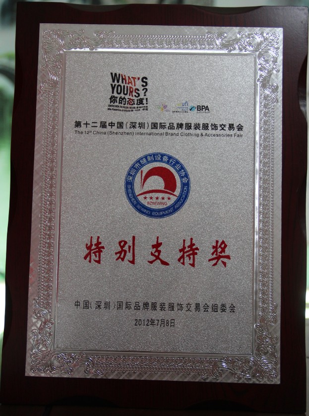 7月10日晚,在第十二届深圳服交会闭幕式晚会上,主办方深圳市服装行业协会为深缝协颁发了“特别支持奖”奖牌。